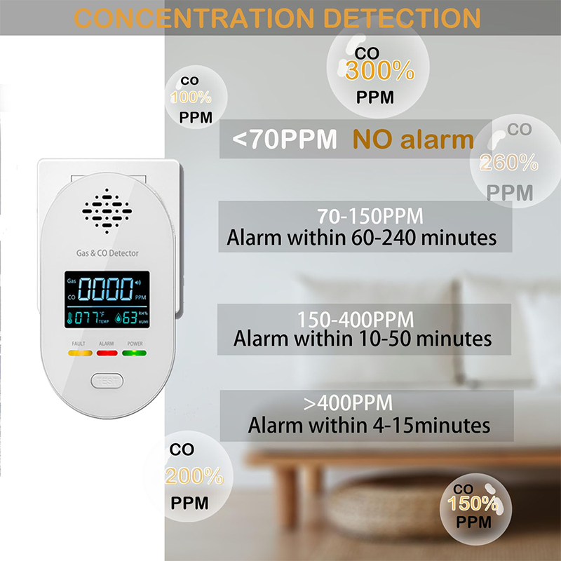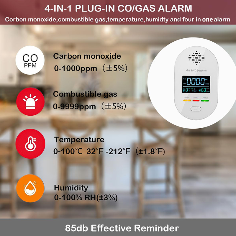 4-i-1 Stekplåt för kolmonoxid och naturgasdetektor