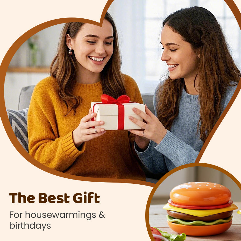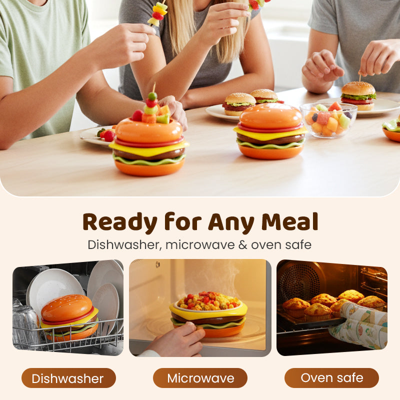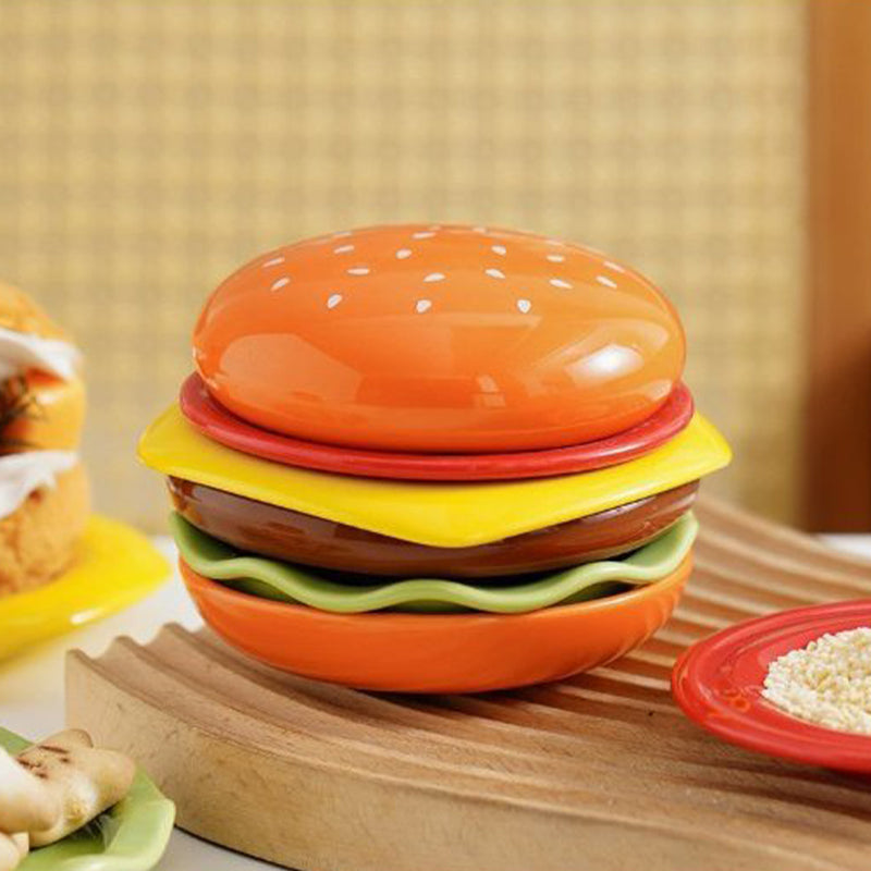 6-delars stapelbar keramisk dipskålssätt i hamburgarform
