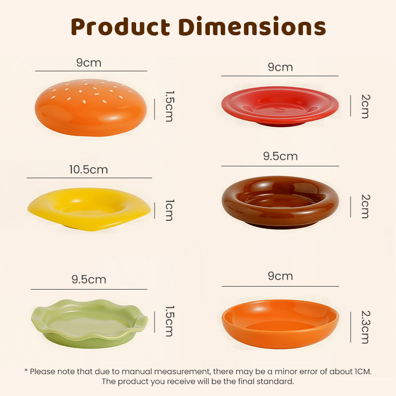 1 × 6-delars stapelbar keramisk dipskålssätt i hamburgarform