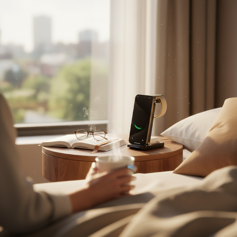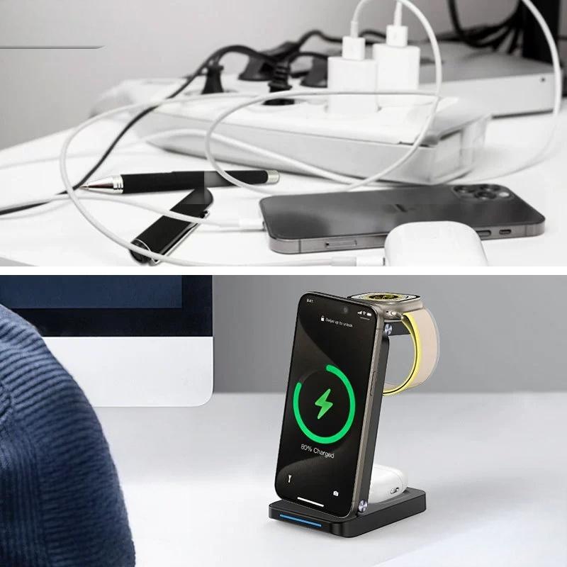 3-I-1 LADDSTATION - Håll ordning och reda genom att ladda din telefon, klocka och hörlurar samtidigt. Detta eleganta ställ eliminerar kabeltrassel och håller alla dina viktiga enheter fulladdade och redo att användas.